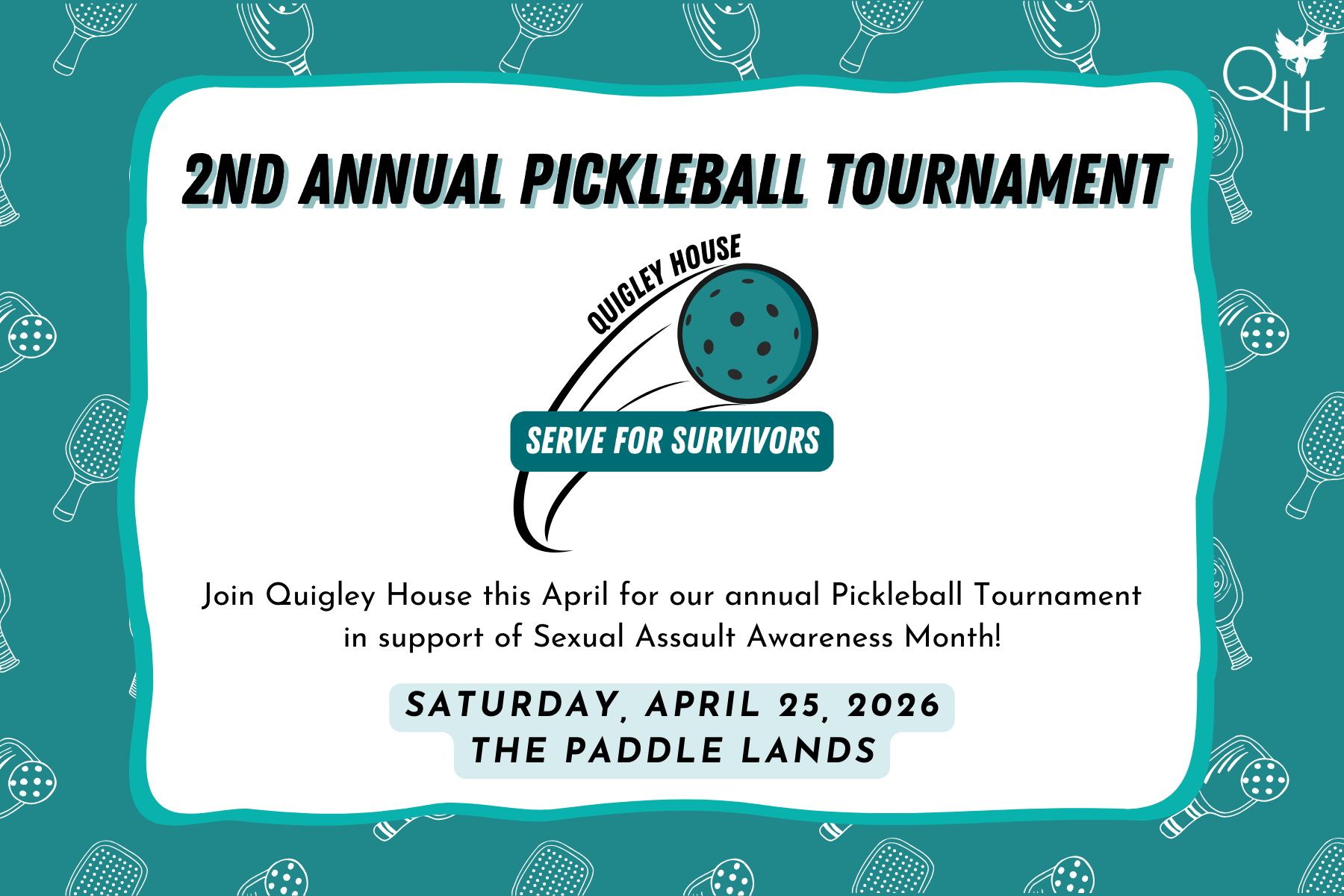 Join Quigley House this April for our annual Pickleball Tournament in support of Sexual Assault Awareness Month!